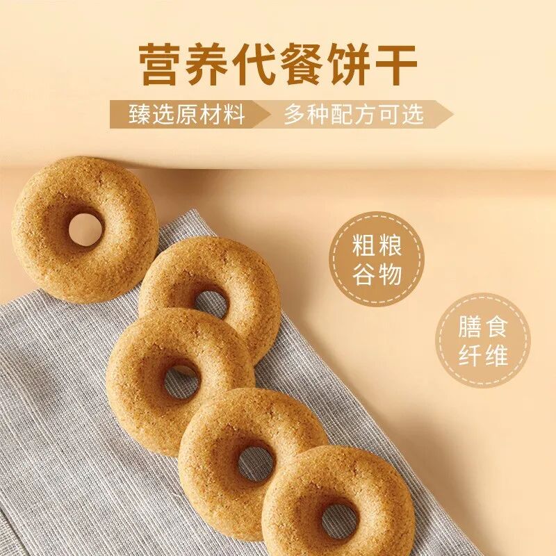 代餐饼干是深受大众欢迎的一款功能性饼干,人生就是博的营养代餐饼干选用马铃薯提取物、栗子粉、圆苞车前子壳、白芸豆、藜麦、大豆膳食纤维等多种臻选原料,配方可根据客户需求定制研发,在市场上形成差异化表现。